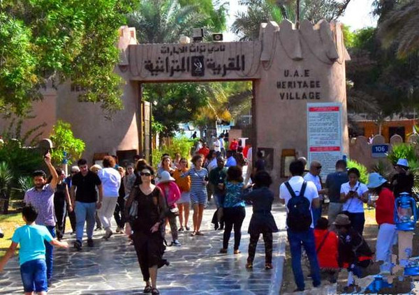 来到阿布扎比的民俗村,这里是来自世界各地游客们的必到之地。阿联酋首都阿布扎比本身就是建立在一座人工岛上的,岛上有一个标志性物体——一个高达200多米的旗杆,这也是号称世界上最高的旗杆。导游陈琪介绍说:该旗杆上面的旗帜长40米,宽20米,总面积达800平方米,相当于小半个足球场了。下面是阿布扎比民俗村。在里面的建筑和环境,再现了当年这里的原住居民的生活状态和风貌。