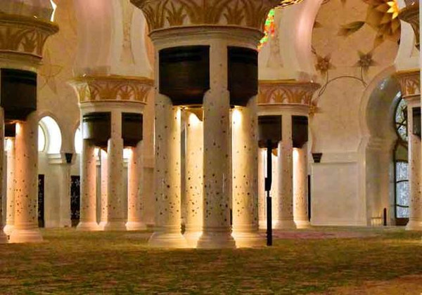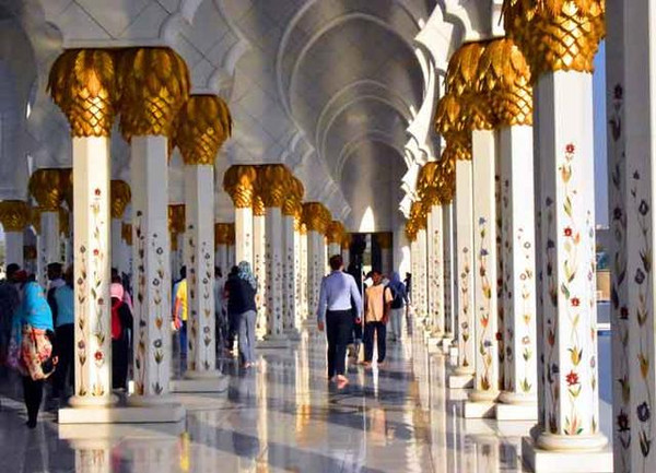 清真寺耗资55亿美元,仅黄金就用去了46吨,整个建筑群都用来自希腊的汉白玉包裹着,非常的庄严肃穆。