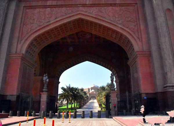 团队从民俗村出来驱车抵达阿布扎比酋长皇宫酒店外参观这座花园般的建筑群。陈琪介绍说:阿布扎比酋长皇宫酒店是全球唯一的八星级酒店,也是迄今为止最为奢华、最贵的酒店,斥资30亿美元修建,该酒店被认为“简直是为国王而建的”。其大厅和总统套房是真正的金碧辉煌、奢华无比。