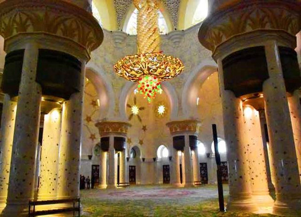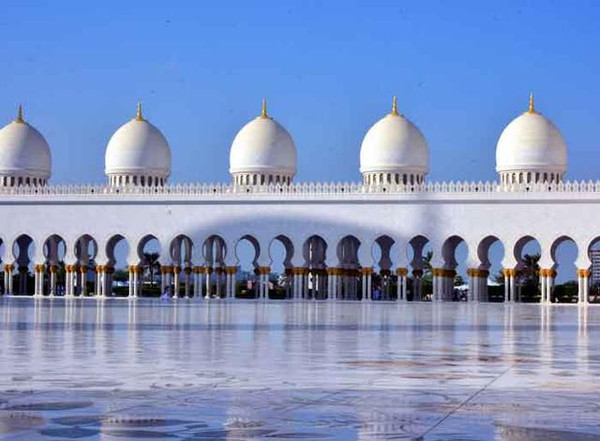 阿布扎比最后瞻仰的是著名的阿布扎比谢赫扎依德大清真寺,该寺位于阿联酋首都阿布扎比的两座桥梁之间:既穆萨法大桥和马格达大桥。阿布扎比谢赫扎依德大清真寺是阿联酋的标志性建筑,于2007年的古尔邦节竣工,对公众开放。是阿联酋七酋长国最大、全世界第八大的清真寺。