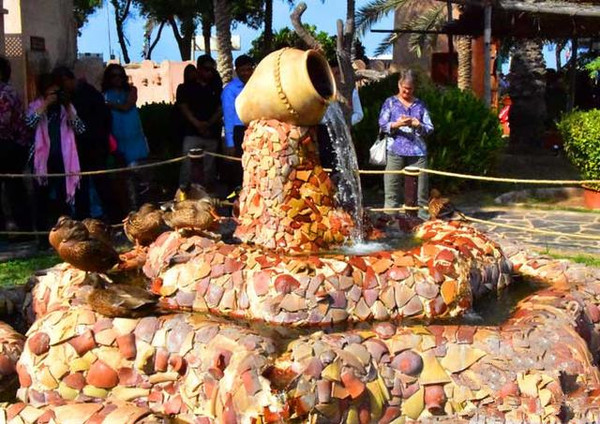 在民俗村的庭院里还有一口井,阿布扎比是阿联酋降水含量较高的酋长国,特别是阿布扎比的阿莱茵地区。民俗村里这口井,说明古代的阿布扎比人也是自地下水得到淡水来维持生存。此外,民俗村里还有身着阿拉伯传统服装的妇女,在里面摆摊出售一些有阿拉伯风格的小工艺品。有时这里还有歌舞表演。