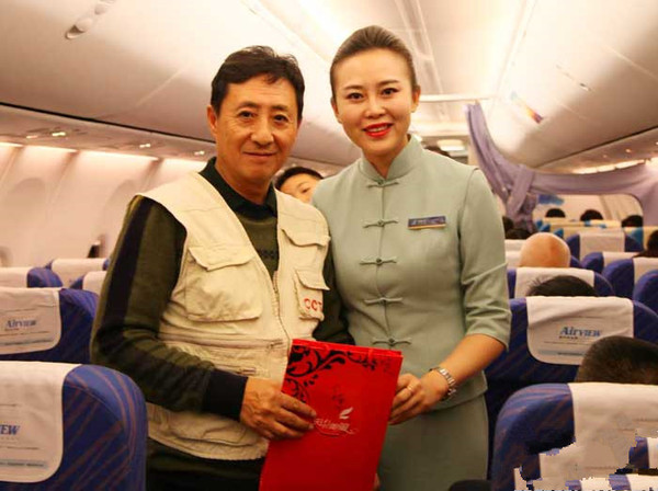 与乘务员留影(摄影:侯璐玢)