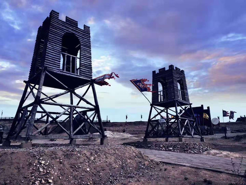 水洞沟遗址旅游区内还保留着一段水岸长城。穿过约3公里的芦花谷,就到了水洞沟遗址旅游区面积最大的一个天然湖泊--红山湖。在这一片独特的雅丹地貌、土林景观里,出现水域面积1.8平方公里的湖泊实属罕见,可更为难得的是:我们看到崖对岸的明长城巍然屹立!大家都知道,我国的长城在修建的时候都是依山傍水、就地取材。但没有一处的长城在面积约7.8平方公里的地方能体现出依山傍水、借助高15-18米的大峡谷和独特的藏兵洞、守军的城堡构成的立体军事防御体系。这也是水洞沟遗址旅游区的一大独特的亮点。