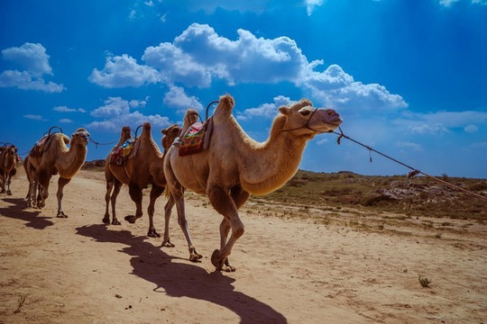 骆驼在西部荒漠区域是主要的交通工具,宁夏也不乏可以骑骆驼的地方,沙坡头、沙湖、水洞沟、黄沙古渡等许多景点都可以见到温驯的骆驼。