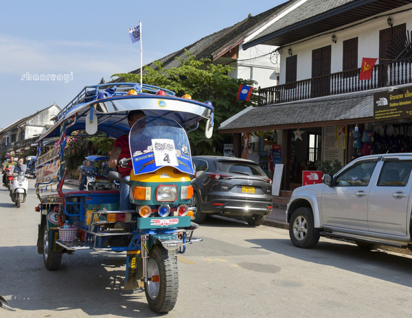 一路上大巴车上非常颠簸,这是一段痛苦的经历。从早上出发,一直到晚上才到琅勃拉邦。下车的地方是一个破破烂烂的车场,当地人一下子都走光了,夜色中只剩下我们这六个中国人。没有办法,我们俩只能找到一个双条车,谈好了价钱就坐上去了。
