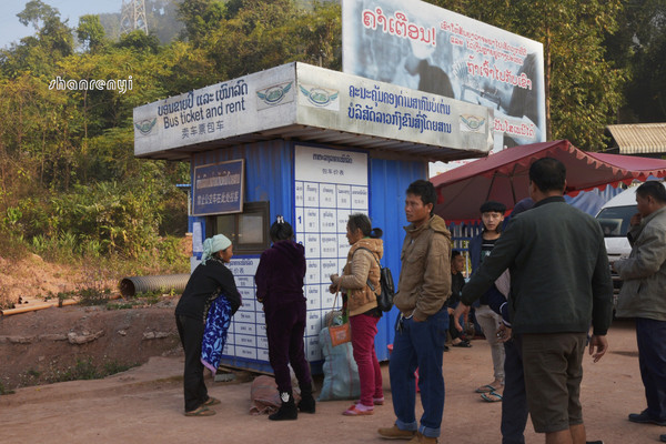 老挝边境小镇磨丁一个售票处,在这里可以买到去金三角等地的车票