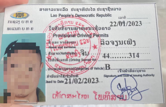 第三步:自驾的话请驾驶员去办理老挝临时驾照。需要1张白底或蓝底证件照(没有可扫描,费用一样)交费50000老挝币。