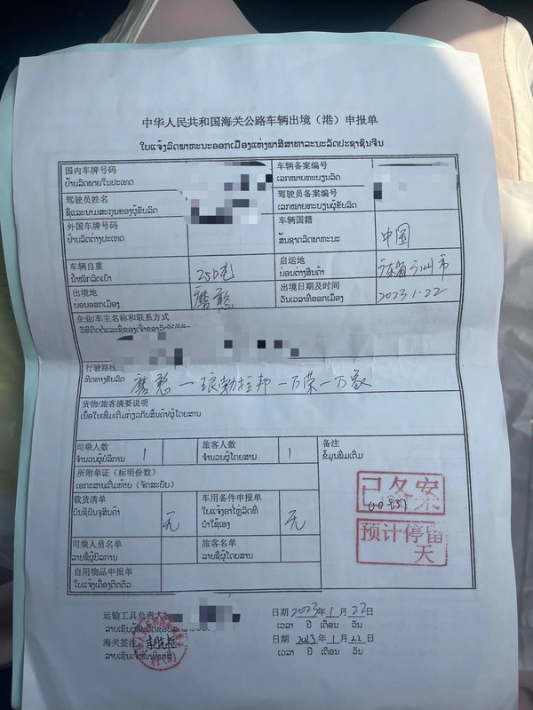 剩下的其他6份资料也要保管好。因为从老挝开车回国有些资料要交回海关的。