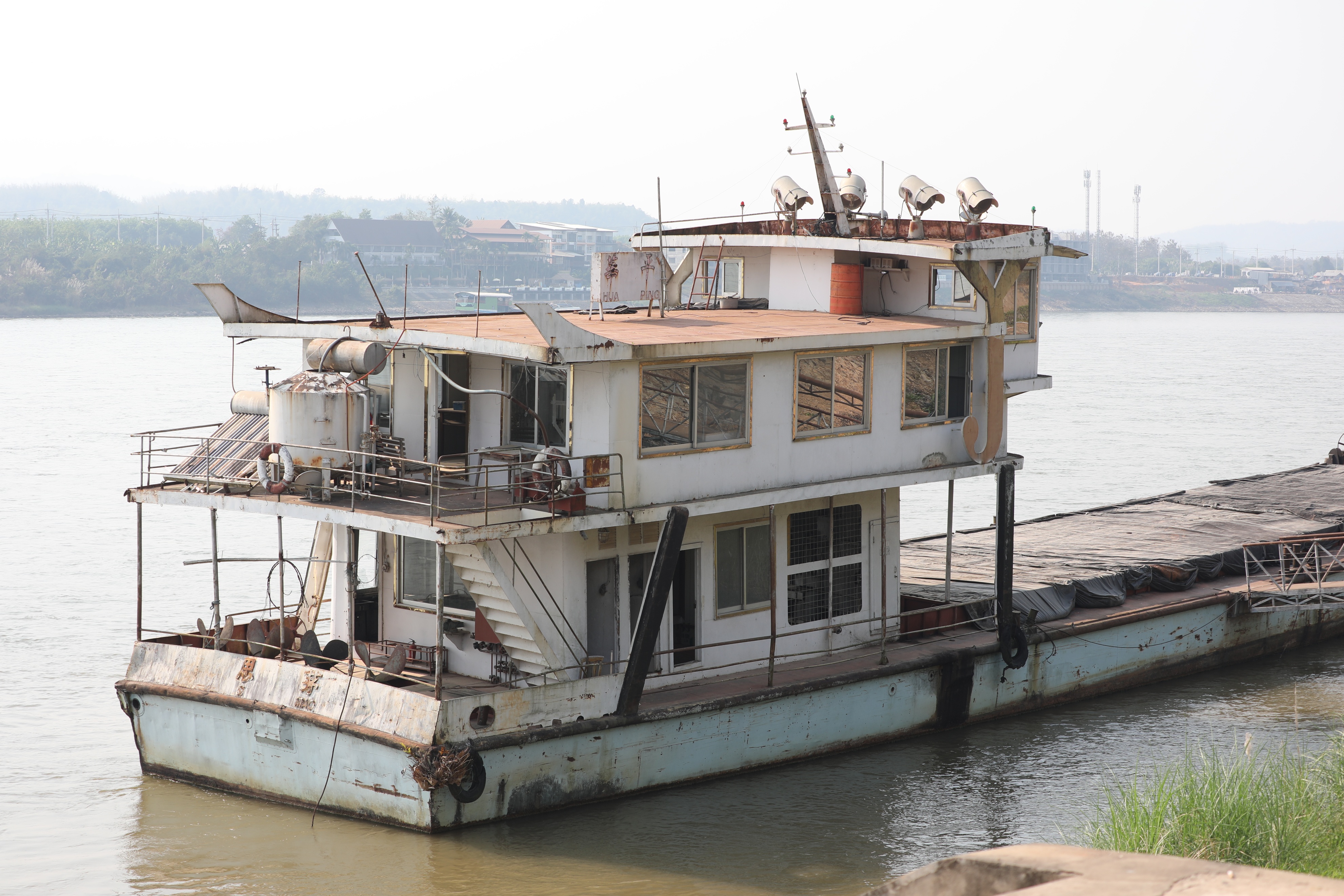 在木棉之星酒店里,就可以隔着窗子一眼望三国,这边是老挝,对面是泰国,北面是缅甸。可以去湄公河码头散散步,近距离感受一下三国交界。河并不宽,航拍器也能飞过去,对面有泰国标志性大佛。湄公河边还有一艘停靠的特别的船只,这就是当年遭到恐怖分子袭击,多名中国船员遇害的华平号,也是电影《湄公河行动》的真实事件。如今船上的弹孔还在,在这里可以祭奠逝去的船员,同时也告诉我们一个国家若不允许被人欺负,就要强大起来。