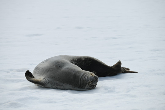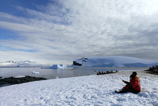 中午,久违的太阳终于露出笑脸,乌斯怀亚号驶入了米克尔森港。下午我们登上了海诺特岛,岛上雪很厚,深的地方能到人的膝盖,大量的企鹅生活在这里,还有几只海豹躺在雪地上晒着太阳。这里是人间仙境,洁白世界,此时此景,让人心旷神怡,让人兴奋不已。开心的游人,有的在雪地上打滚,有的在打雪仗,还有的情侣静静的坐在雪里,欣赏这梦幻的童话世界。太美了,南极!