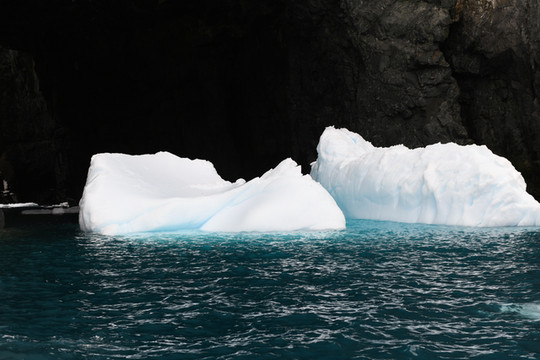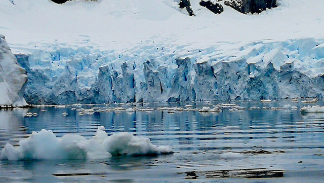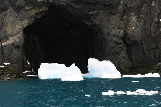 今天行程的安排,上午海上巡游,下午登陆海诺特岛。吃过早餐,大家早早来到登艇处排队,今天巡游的是南极半岛的恩伯特岛,这是一个断崖式的岛屿,有着陡峭高耸的山峰,由于没有登陆浅滩,只能乘坐冲锋艇巡游。登艇后围绕着恩伯特岛开始了1个多小时的巡游。岛屿周围有很多浮冰和冰山,风浪很大,冲锋艇穿过两个非常壮观的巨大溶洞,在波涛汹涌的狭窄水道中狂奔,这是一种非常刺激的体验。让人更加兴奋的是,观赏到了大量的蓝冰,据探险队员介绍,浮冰其实是没有颜色的,是在阳光散射后出现的蓝色效果。蓝冰在清彻的海水映衬下,晶莹剔透,白中带蓝,玉洁珠润,让人心醉。