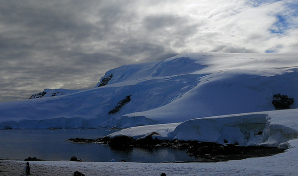 今天我们非常幸运,下午又一次登上了南极半岛的尼克港。尼克港是安德沃得湾深处的一处登陆点,是一个天然海湾,靠近海岸线的冰川前沿,经常有裂开的冰山倾人海中,气势磅礴,崩裂伴随着巨大轰鸣声,非常震撼。海湾被群山和冰川环抱,岛上有大量的金图企鹅在此居住和繁殖,这些企鹅生活很不容易,每天沿着他们的“高速公路"长途跋涉,下海捉鱼捕虾,养家糊口。企鹅对游人毫不畏惧,经常向游人奔来,我们只能停下来,给它们让道。