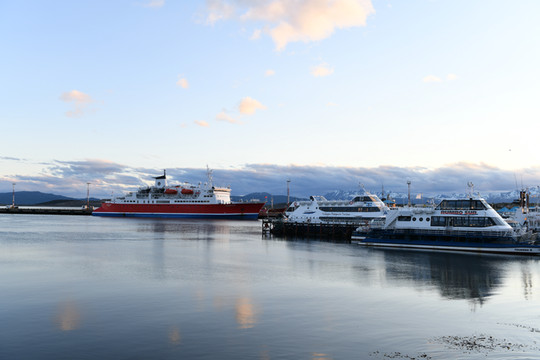 乌斯怀亚城市虽然不大,但它以及特有的地理位置,显得优为重要,它是一个自由港,是通往南极大陆的门户,这里距离南极半岛只有800多公里的距离,吸引了大批科考队和游客从这里前往南极。小城街道两边,全是童话里才会出现、属于白雪公主的小木房,依山傍水,郁郁葱葱的山坡,白雪皑皑的山峰交相辉映,风景如画。