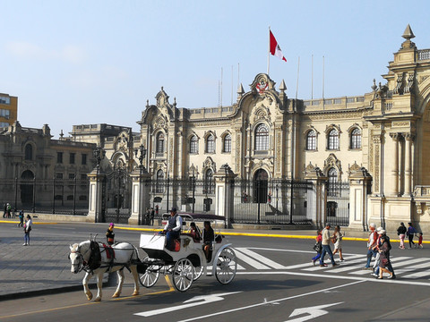 总统府历史悠久,1535年修建,1821年7月28日秘鲁民族英雄何塞.德.圣马丁在此宣布秘鲁独立,现为总统办公地。