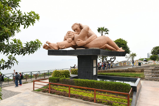 结束了这里的参观,我们来到了海边的爱情公园,公园不大,西临太平洋,沿着一段陡峭的沙石悬崖修建的街心公园,公园因有一座秘鲁艺术家维克多戴尔芬的雕塑作品《吻》而成名。