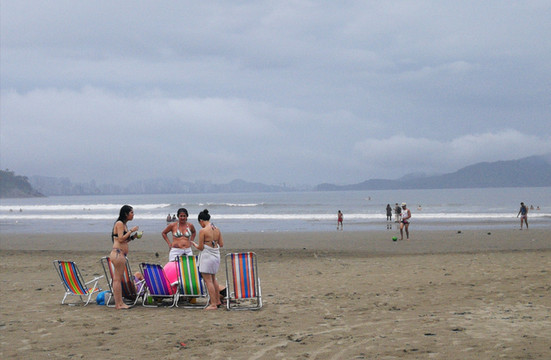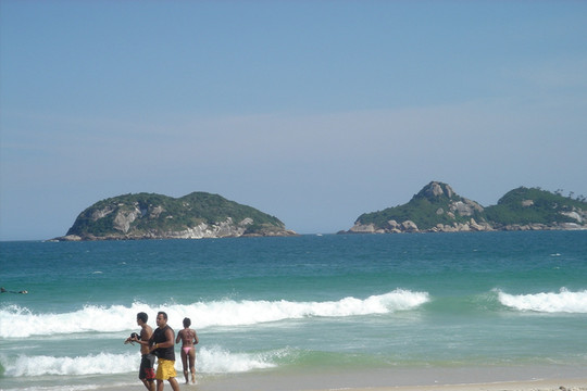 科帕卡巴纳海滩是世界著名海滩之一,位于里约的黄金地段,海岸线长达4.5公里,海水湛兰,浪花雪白,沙滩松软,非常的迷人。海岸大道旁,宾馆、餐厅很多,风浪很大,天气不好,极少看到有人下海游泳。