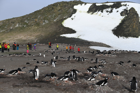 南极是企鹅的家,这个季节正是企鹅的繁殖期,大量的企鹅有的在产蛋,有的在搭建的巢穴里孵着自已的宝宝,企鹅先生站在旁边站岗放哨,保护着它的情侣,分工明确,各尽其责。当我们还沉醉在观赏之时,探险队长通知大家上艇返航,结束了一天的行程。