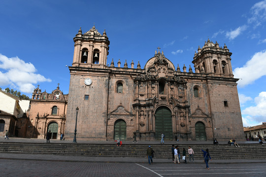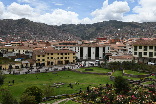 距离神庙不远,就是库斯科市中心的武器广场。广场的南面,是印加人在太阳神庙的基础上,建造的拉孔帕尼亚教堂,现在是自然历史博物馆;广场东面是1560年始建的库斯科大教堂;广场的西面和北面是西班牙式的拱形长廊,很多商铺在此营业;站在周边的高处遥望库斯科城,一坡红顶,满山壮观,碎石小路,路途遥远,置身这个城市,就是置身于千年前的历史回忆中。