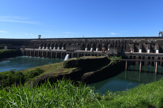 伊瓜苏大瀑布是世界上最宽的瀑布,位于巴西和阿根廷交界处,3/4在阿根廷境内,1/4在巴西境内。马蹄型瀑布由275个瀑布组成,最大瀑布跌水90米,流量1500立方米秒,被称为“魔鬼之喉"。伊泰普水电站是世界第二大的水电站,泄洪道最大泄洪能力每秒62万立方米,相当于40个伊瓜苏瀑布的流水量。