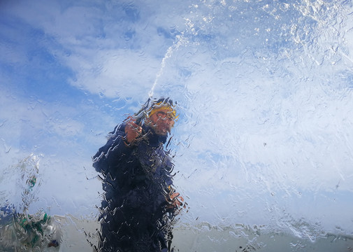 岛上活动结束后,我们来到海边,进行今天最刺激的冰泳活动,天气给力,气温5~6度,有30多人先后跳入冰冷的海水里,挑战自我,体验冰泳的快感。我是一个喜欢刺激冒险的人,当然不能错过这一难得的机会,脱掉外衣,跳入海中,向大海深处游去。