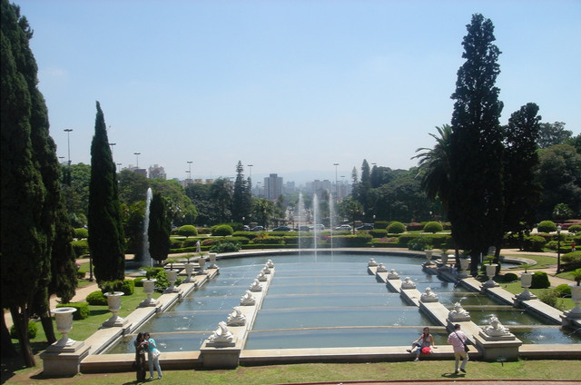下午我们去了圣堡罗独立公园,该公园是由皇宫博物院花园、独立广场、独立纪念碑组成。站在博物馆前,可以俯视花园全景,远眺纪念碑,视线开阔,一揽无遗。很可惜,博物馆维修中,我们无法入内参观。独立纪念碑是1922年为纪念巴西独立 100周年而建,碑上的铜像,是为巴西独立做出卓越贡献的佩德罗一世。纪念碑的圣火终年不熄,与迎风飘扬的巴西国旗遥相呼应。