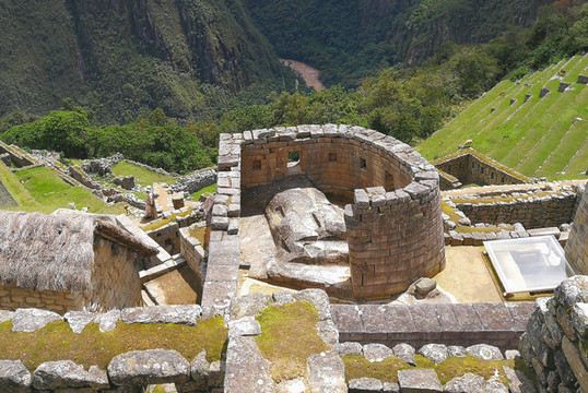 三窗庙是马丘比丘最重要的圣地,一面巨大石墙上,三个窗口正对着安第斯山脉的层峦迭峰,三个梯形窗很能表现出印加石匠精湛的石雕功力。