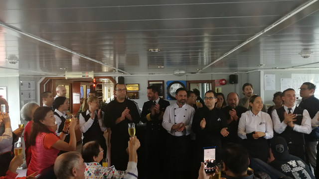 最后,在热烈欢庆的气氛中,太家共同举起酒杯,祝贺南极之行圆满成功。随后,拍了一张90多人的全家福留作纪念。