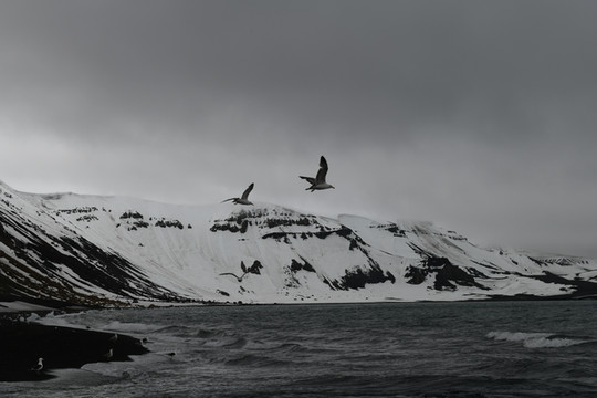 下午我们登上了这次南极之行的最后一个岛屿一一半月岛,岛如其名,长约2公里,海边悬崖处是大量帽带企鹅的栖息地。由于岛上气温比较暖和,这里已经很少见到积雪,袒露的岩石很多,我们登岛时风特别大,并伴随着小雨夹雪,寒风刺骨,冲茫的走了一圈,拍了几张照片,留作纪念。至此,我们结束了南极大陆的全部行程,开始返航。