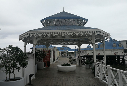 下午我们来到了海玫瑰、商业步行街和长海娱乐中心。这三个地方都在海边,相隔不远。海玫瑰是一个人工填岛建城的一座高档餐厅,在当地很有名气,规模很大,装饰豪华,整个建筑很有特色,也算当地的一个观光景点。