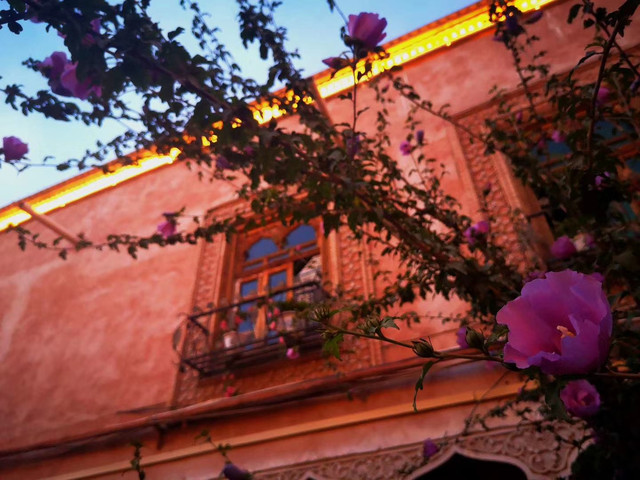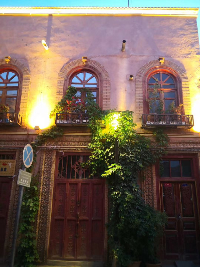 夜幕降临,也是一天中最美的时候,喀什的夜色之美,充满了丝绸之路上异域的神秘色彩,与荷塘月色相比,多了色彩斑斓的意境,让人安宁又心潮澎湃,色彩鲜艳的墙上都依托着姹紫嫣红的花儿,或许沙漠的太阳更加强烈似的这些花儿在夜幕降临下灿灿发光,仿佛进入到了爱丽丝梦境般的世界,让人流连忘返、