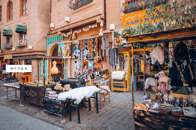 踏入古城的第一感觉似乎抵达了欧亚大陆的中心-土耳其。这个与土耳其极度相似风格的异域充满了异域的风情,无论是语言,奶茶还是食物,实在让我仿佛穿越到欧亚的核心城市-伊斯坦布尔,又仿佛在埃及开罗的某个街道也有似曾相识,虽然普通话在此地交流异常困难,但当地人还是非常友好的费力聆听你的需求,街道上,出租车上都是维吾尔语的歌神甚至有时感觉很多歌曲是伊朗的风格,实在令人感觉异常恍如隔世,在时光中漫步。