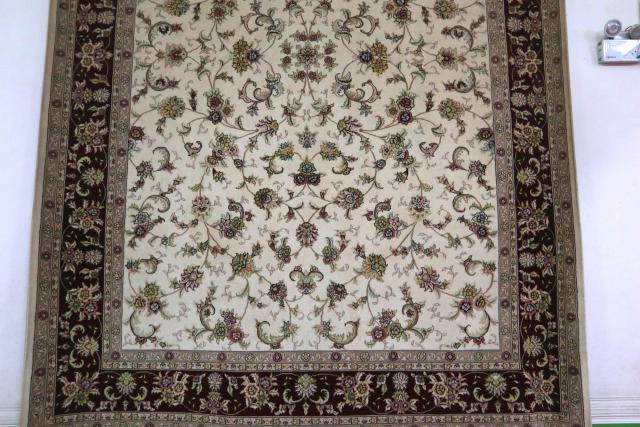 维吾尔语中“艾提“是节日的意思,”尕尔”是欢乐的广场的意思。“艾提尕尔”就是节日欢乐广场的意思。清真寺是穆斯林举行宗教活动的场所,是穆斯林做礼拜的“叩拜之处”。全寺由大殿、教经堂、洗澡堂、院落、拱北、宣礼塔和大门组成。进入大门后,是一个巨大的绿树成荫的院落,中间是宽敞的人行道,院落里有花木及水池。南北墙边各有一排共36间教经堂。大殿共2600平米,从中间的八级台阶可直上大殿的前廊。正殿长36.5米,宽10.5米,高8.1米。大殿里共有18根木柱,与外殿的类似,这些木柱无一相同。在我眼里,这些木柱并无不同,旁边的工作人员主动过来,指引我们看每根木柱的不同之处,仔细看,每根柱子的花纹和花纹的高度都有微小的差别。工作人员热心地介绍说,这里的140根木柱,分别由140位能工巧匠加工。