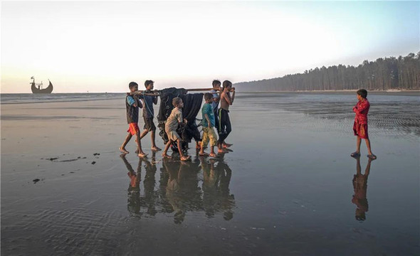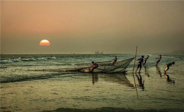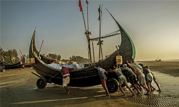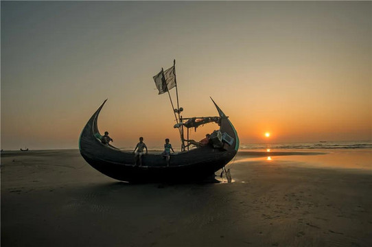 在孟加拉国的科克斯巴扎尔,当你去到那里的海滩时,可以看到当地渔民使用的一种传统捕鱼船,其造型很有意思,类似弯月,因此人们把这种船称为“月亮船”。