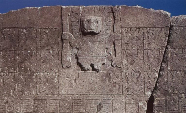 作为该文化的代表太阳门,由重达百吨以上的整块巨型中长石雕镌而成,造型庄重,比例匀称。它高3.048米,宽3.962米,中央凿一门洞。门楣中央刻有一个人形浅浮雕,人形神像的头部放射出许多道光线,双手各持着护杖,在其两旁平列着3排48个较小的、生动逼真的形像,其中上下两排是面对神像的带有翅膀的勇士,中间一排是人格化的飞禽,浮雕展现了一个深奥而复杂的神话世界。