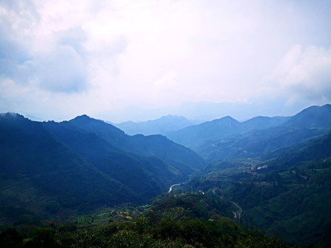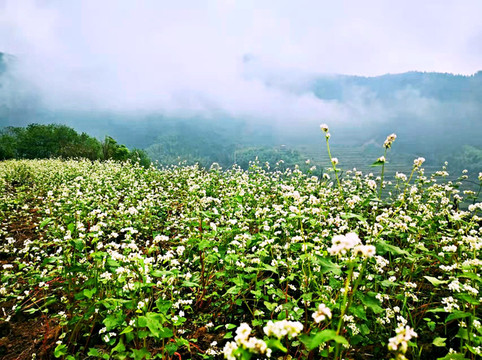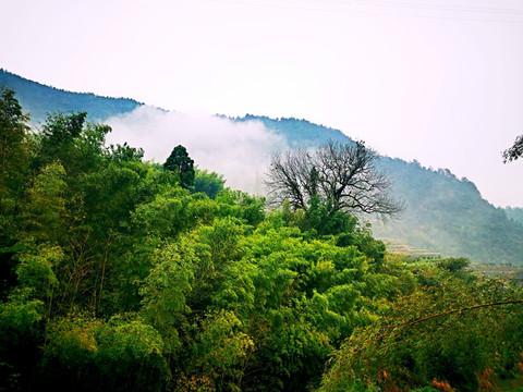 次日清晨,微雨轻扬,山峰间洁白丝滑的云雾翻涌飘渺,在蜿蜒曲折的山谷之间来回游走,时明时暗,形成俊美秀丽的云海景观。