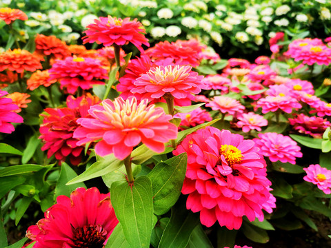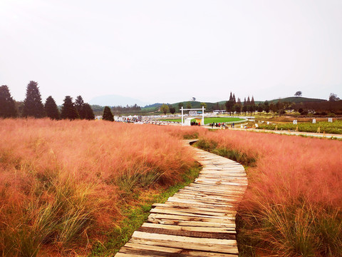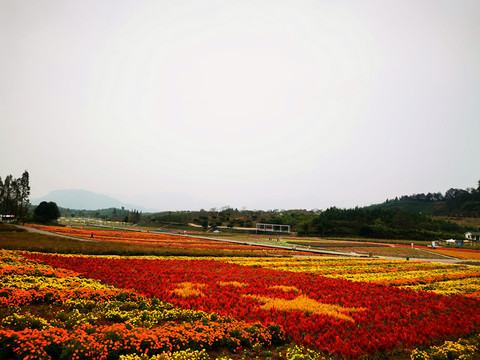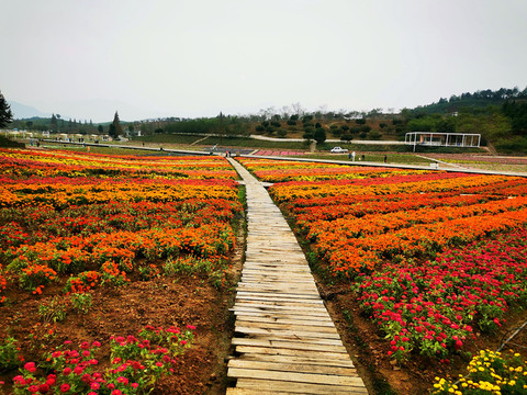 花田小镇最吸引游客的,是漫山遍野的姹紫嫣红。我们参观的时机稍稍有些滞后,很多鲜花已经偃旗息鼓,网红花粉黛乱子草容颜不再,只有那百日草依然风采奕奕。