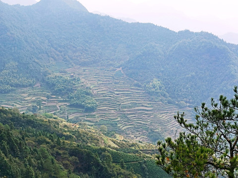 村子背后的鹤仙山上,种植了大片的茶叶、板栗和油茶。