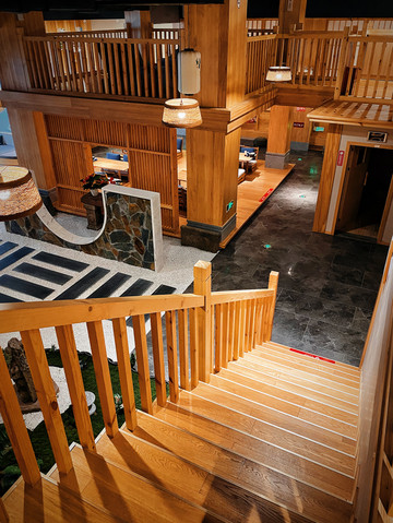 舒适的泡完温泉,还可以在二楼的休闲区或品茗闲叙,或静坐放空。颇具禅意的风格与原木色相结合,清幽雅致,帮我把刚刚泡温泉的暖意定格。