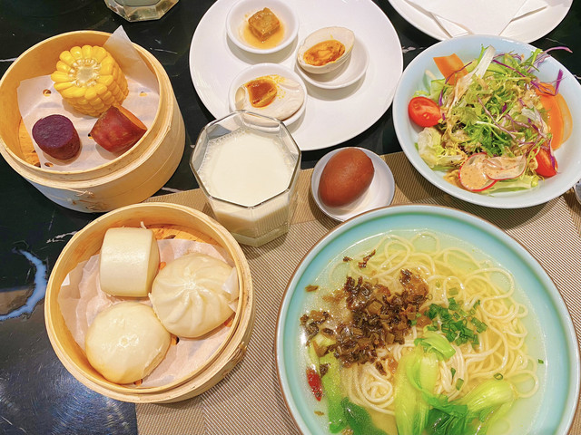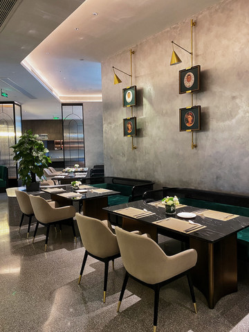 早餐目前都是在西餐厅用,有中式、西式套餐可选,品类很丰富。餐厅里现代轻奢+民国风中西合璧的设计真的很棒。