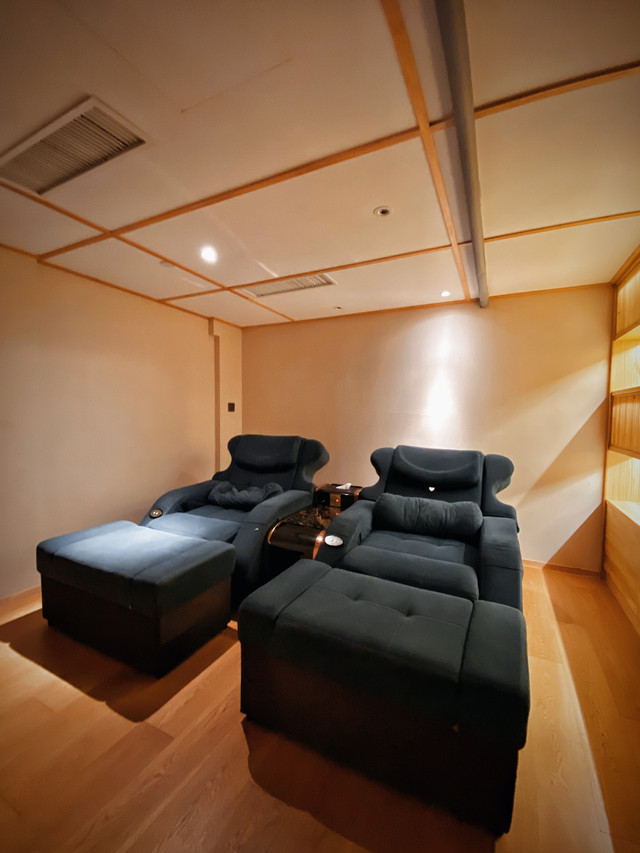 这里还有影音室、书吧、spa按摩、足疗、汗蒸、电玩等等,全家出行都能找到适合的放松活动。饿了也可以在这里点餐,不用担心饿肚子,完全能呆上一整天。