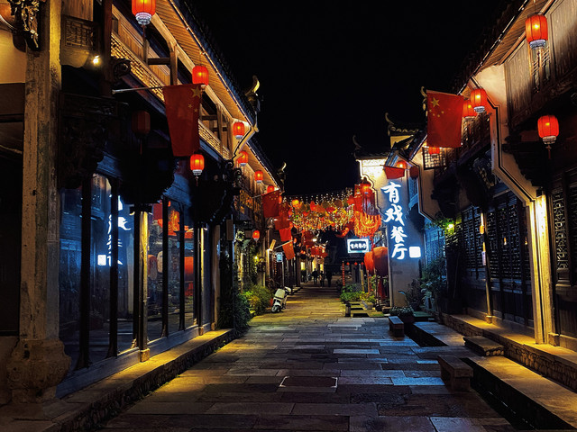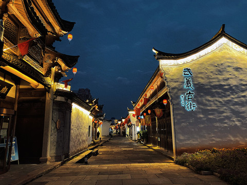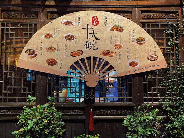 如果你想找到武义那些不需要营销的老店和美食,来武义古街附近找准没错。浙江省大部分城市都有古街,武义也不例外,但让我惊讶的是,这条古街好好拍!来这儿的时候已经是夜幕时分,人并不多,红色灯笼的点点微光映照着古朴的老街。路上的青石板大多被岁月磨平,街面两边散布着这里的原住民开的小店,一点也没有故意讨好游客的商业气息。