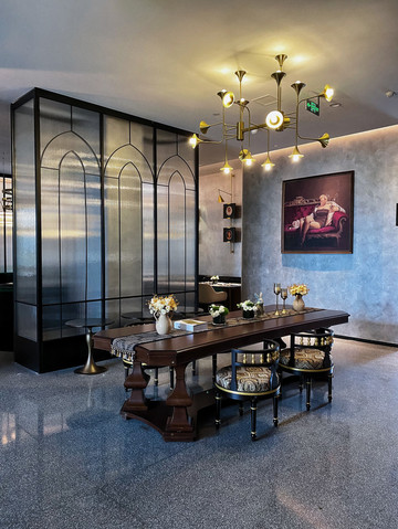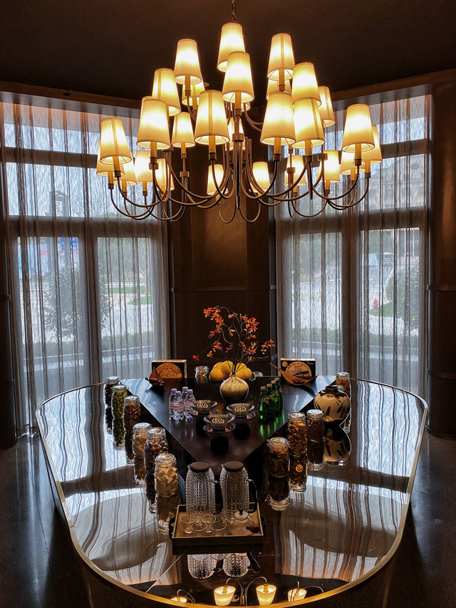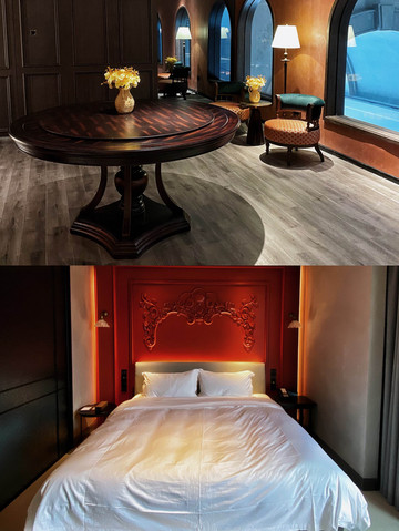 室内则是民国风的设计,从大堂的装饰、灯具到转角的公区和墙上挂着的旗袍装饰,再到充满复古元素的家居摆件和生活场景,都透露着怀旧的质感,和整座小镇散发着江南气息的古色古香的氛围也正好相辅相成。