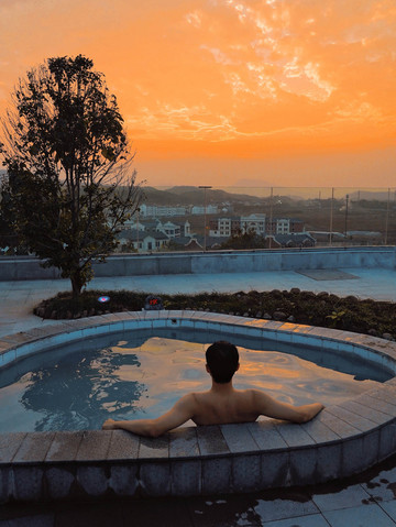 真的非常喜欢这里的氛围,伴随着今天的夕阳,踏进阳光温泉浴吧的一汤暖池,尽情闭眼享受被夕阳和暖意包裹的感觉,身上的疲惫就在此刻一扫而光。