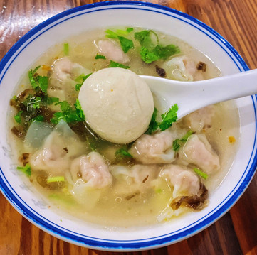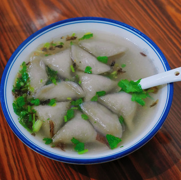 芋饺糯叽叽很有嚼劲,外面的皮是芋头做的超级Q弹,里面荤素搭配的馅儿很充足,肉也紧实弹牙,就着汤一起吃,味道极其鲜美,分分钟炫完一碗。