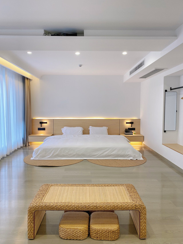 一到店,热情的老板就带我参观了整栋民宿,入住的榻榻米房间温馨舒适,大大的落地窗让室内采光非常好。这里每间房都有投影,没想到来旅行也可以爽爽大屏追剧了。床品也超级舒服的,尤其是今天泡了温泉,睡的那是相当好。