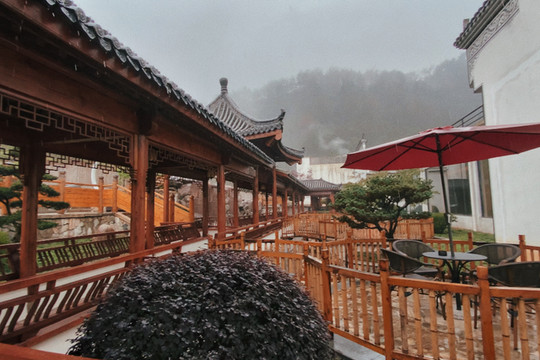 我去的两天刚好都有点下雨,但“山色空蒙雨亦奇”的景致也别有一番风味。如果天气好的时候,大家可以选择下午的时间来璟园汤,可以在这里等一场落日。过段时间,天气再冷些,如果可以选一个下雪的日子来应该也会更有冬日氛围感吧。