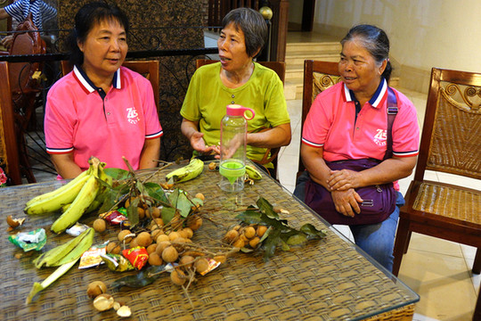 在百忙之间抽时间参加聚会第二天就要离开的曾和平同学、广州同学的积极组织者杨舒同学、不远万里从英国回来参加聚会的林欣欣同学、远在大洋彼岸的美国30年后第一次回国的陈炳业同学、此次聚会提出动议的张水民同学,分别在座谈会上发了言,表达了他们对同学的相思之情,对聚会筹备小组同学们的感激之情,对我们曾经生活生长的海南岛和热作两院的怀念之情。英洁同学对此次聚会计划的调整做了解释,林丽芳同学对聚会T恤上的标识做了说明。在场的每一位同学都静静地聆听着,感动着……….