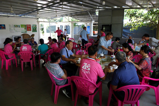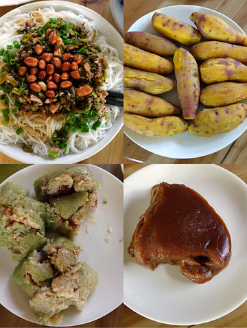 当车子从那大驶向两院时,我怎么也找不到一点曾经的记忆,唯一看到的是路牌上仍有“两院”的标识。原来现在已经有多条路可以进出两院,我们到两院的第一站是在云月湖(过去叫沙河水库)旁的云月乐乐山庄吃午餐,杨大森同学已经在那里等候。一见面他就抱歉的说:对不起啊,找了两天也没找到木薯,因为现在不是木薯季节,要等到11-12月份才有。原来这是筹备组提前要求准备的,大家仍津津乐道2015年聚会时杨大森同学带去的黄心木薯,见面第一天就宣布他在两院准备好木薯等候大家。这顿午餐我们吃到了儋州特产:米烂、粽子、年糕,还有久违的蜂蛹,当然少不了鸡、鸭、鱼、肉……,分量之大之多之丰富,同学的热情之心跃然于满桌的美味佳肴。