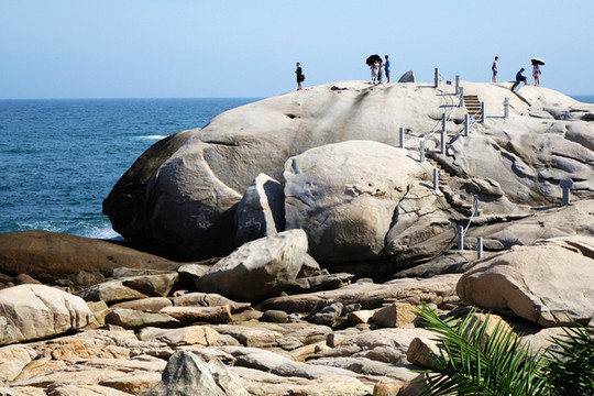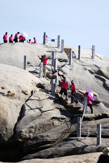 那个最高的浑圆的礁石独立撑起了一座石山,陡峭险峻,可以沿着索道攀登上去,站在顶上就是一名胜者!从石山上可以远眺铜鼓岭最高峰。
