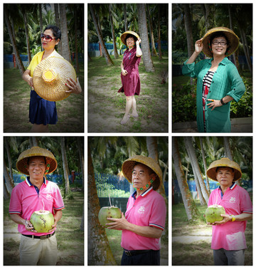 在范同学家的椰林里,我们利用一个具有鲜明特色的渔民帽子做道具,留下了“文昌媳妇”、“文昌渔民”的有趣照片。筹备小组在大门前留下了合影。